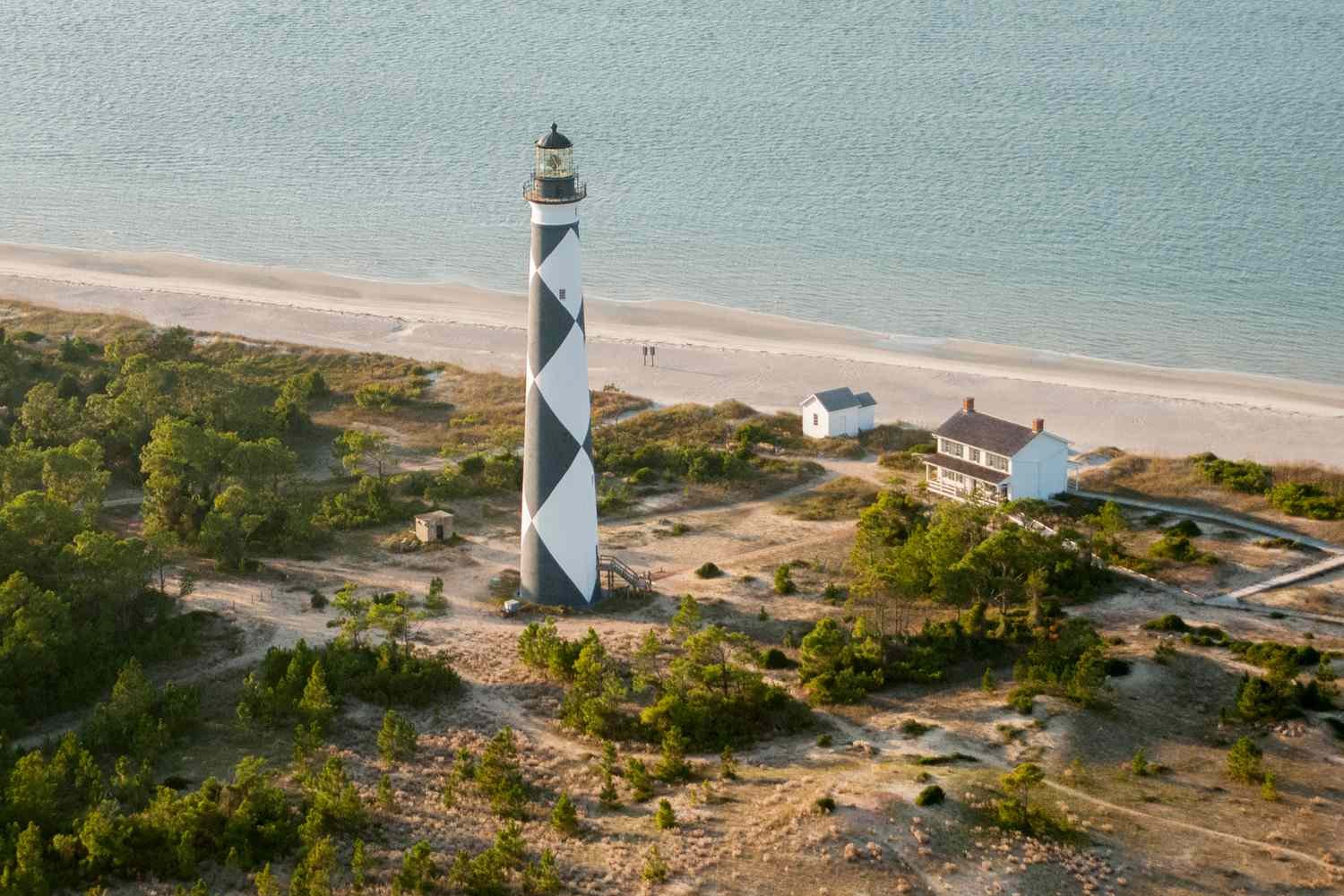 There are 56 miles of undeveloped beaches, dunes, and marshes on the Cape Lookout National Seashore, a protected chain of three barrier islands: Shackleford Banks, North Core Banks, and South Core Banks. Here, says Blackwelder, you can “experience the Outer Banks as it was before it was developed.”