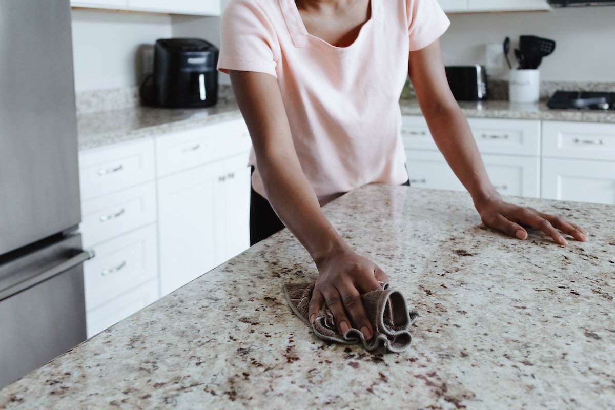 - Wipe the countertops with a clean and dry microfiber cloth.