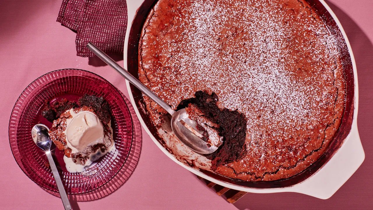 In the Venn diagram of chocolate bakes, this recipe falls squarely in the middle of where brownie, molten chocolate cake, and chocolate soufflé meet.